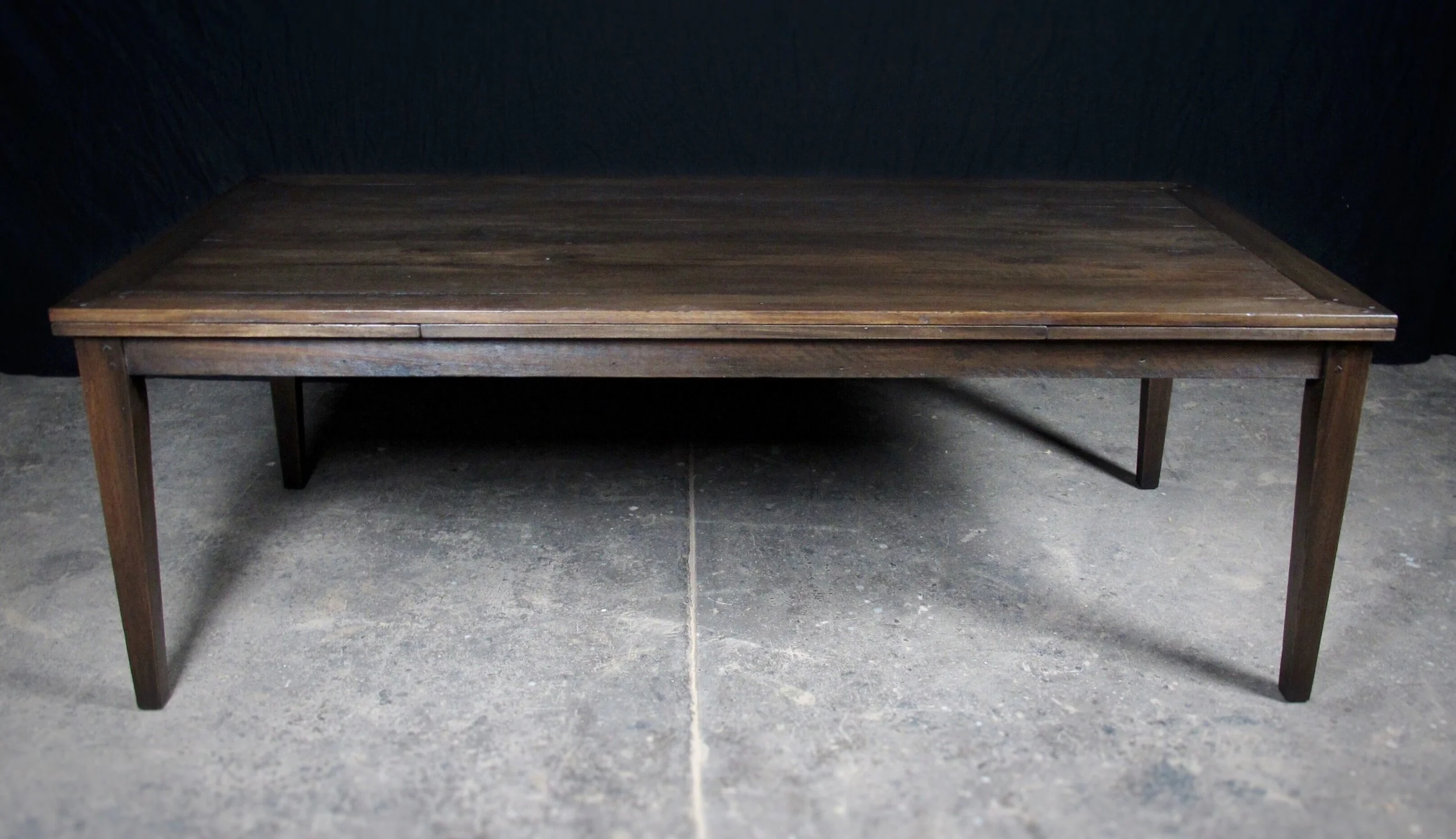 Handcrafted to order in a range of finishes, the simple table with four straight legs. Leg placement can be positioned from right at the ends